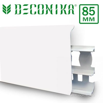• DECONIKA 85 мм. Серия подойдет практически для всех видов помещений, благодаря большому ассортименту цветов, с нанесенной текстурой, матовой или глянцевой поверхностью. Наличие кабель-канала позволяет спрятать провода, а лицевая поверхность устойчива к царапинам и повреждениям.